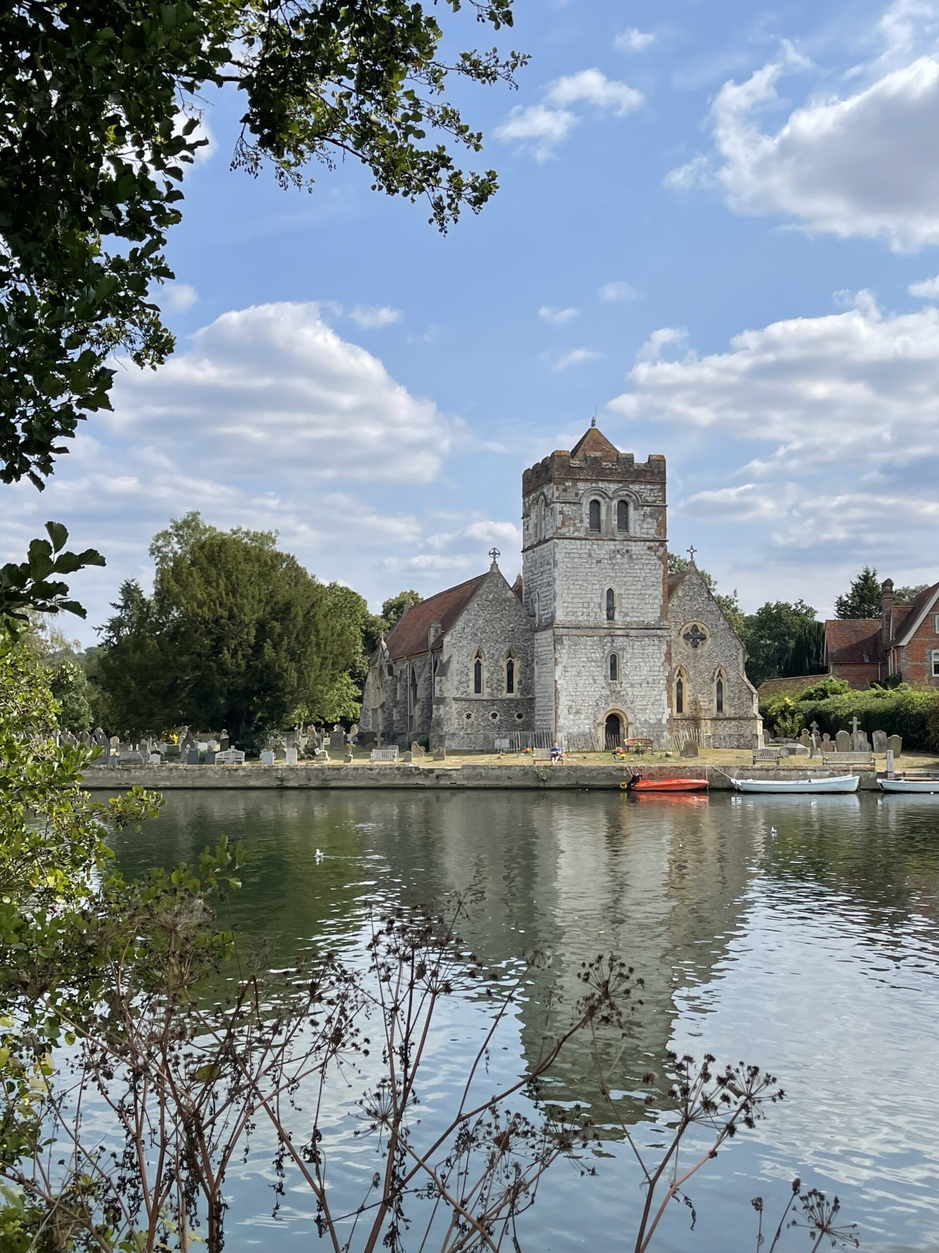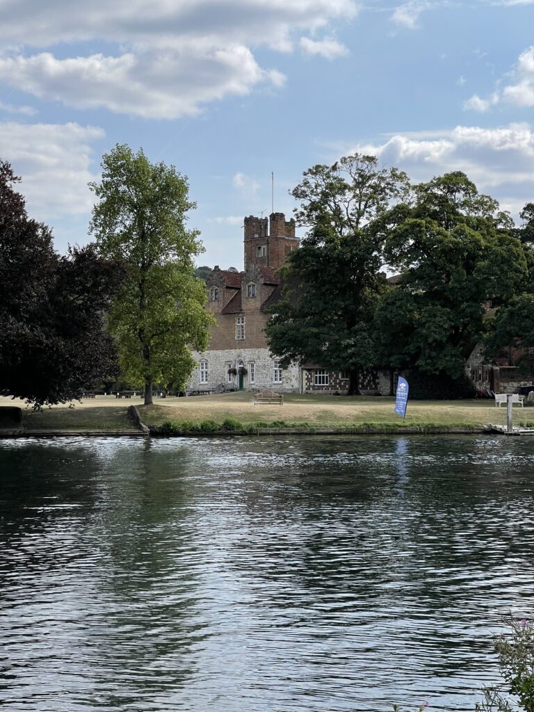 Rounding the bend of the river, Greenlands Mansion appears on the opposite bank. This early 19th-century mansion was once owned by William Henry Smith, son of the founder of W.H. Smith newsagents. Jerome K. Jerome described it in his 1889 novel, Three Men in a Boat, as “the rather uninteresting river residence of my newsagent – a quiet unassuming old gentleman, who may be met with about these regions, during the summer months, sculling himself along in easy vigorous style, or chatting genially to some old lock-keeper, as he passes through.”