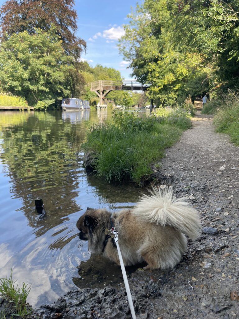 Back on track, we took a short break near Hurley Riverside Park, and Cher had another swim in the Thames—a frequent occurrence now! I have to stop her if she wants to be carried, though; I don’t want to smell like wet dog!