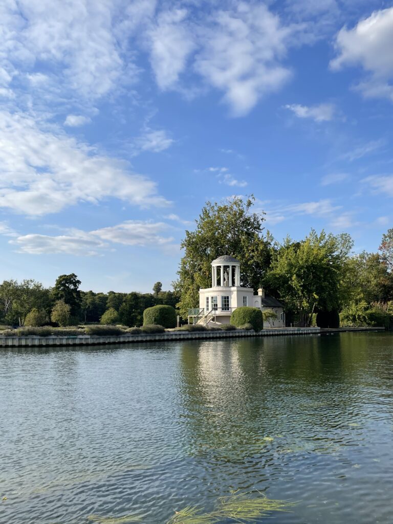 With Henley now in sight, we were on the home stretch. We passed Temple Island, marking the start of the Henley Royal Regatta course. This island features a folly, a Grade II listed building constructed in 1771. Originally a fishing lodge for Fawley Court, it is now off-limits to visitors, who require written permission from the Henley Royal Regatta Committee to moor or land on the island.