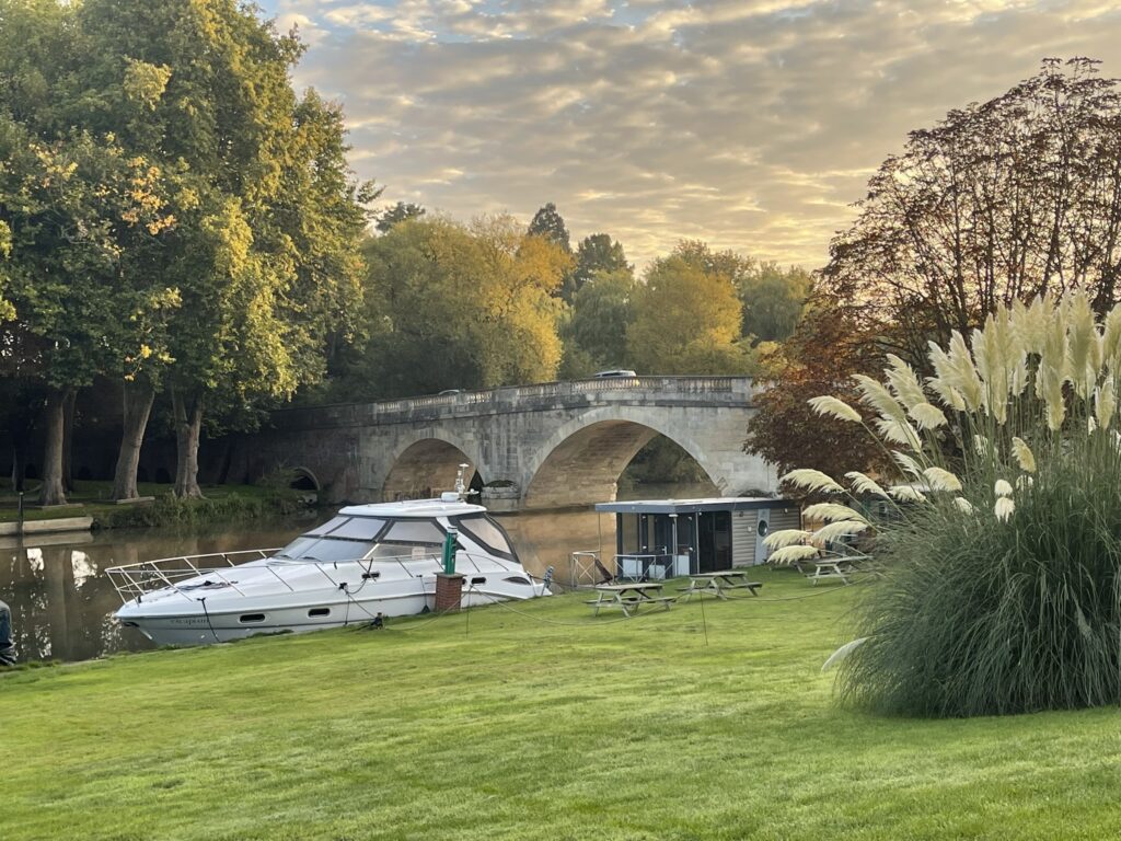 After leaving the hotel at 9:30, we crossed Shillingford Bridge. A bridge has stood on this site since the 14th century, with the present Grade II listed stone bridge, featuring three semi-circular river spans, dating back to 1827. This replaced a previous bridge built in 1767. Initially a toll bridge, tolls were abolished at midnight on November 1, 1874, and the toll-keeper’s cottage was demolished in 1937.