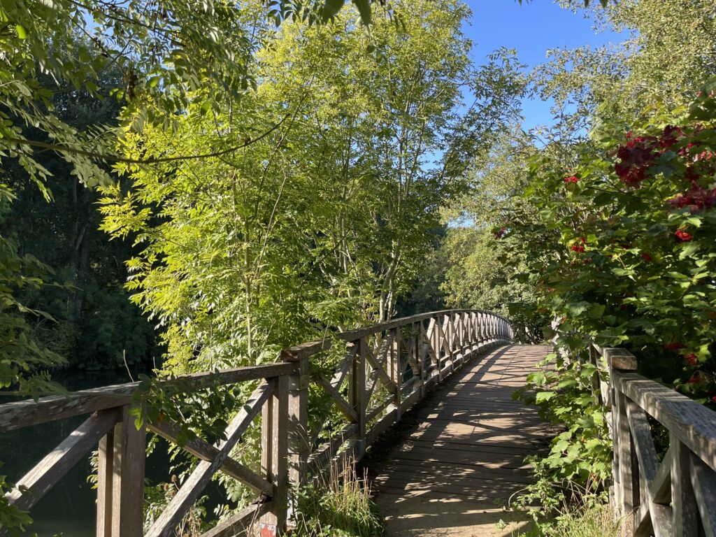 Our journey along the path led us to the charming Little Wittenham Bridge. This footbridge, built in 1865, serves as a link between Little Wittenham and Dorchester. Until 2018, it was a prominent feature in the World Poohsticks Championships, used for the heats and as the setting for the event’s final.